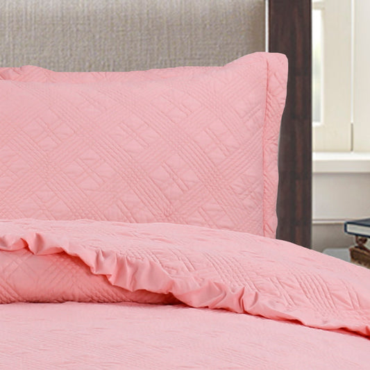 Kasentex Ultra Soft Quilted Comforter Set with Ruffled Trim Edge, Peach Rose, Room Decor, Graduation Gifts